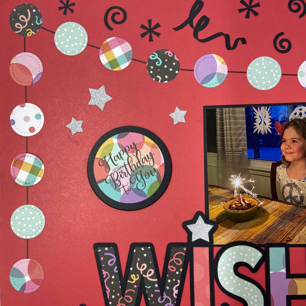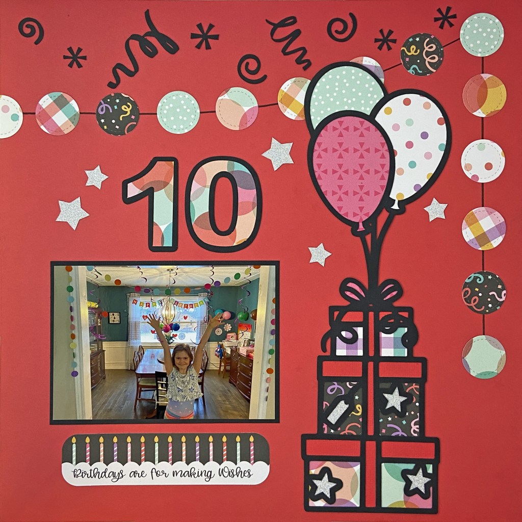 The final touches on the layout included adding 3 die cut cardstock pieces from the It’s Your Birthday Ephemera pack, and scattering the additional stars throughout the layout. And that’s a wrap on Birthday #10 for this sweet girl! I hope her next 10 years are as much fun as the first!
