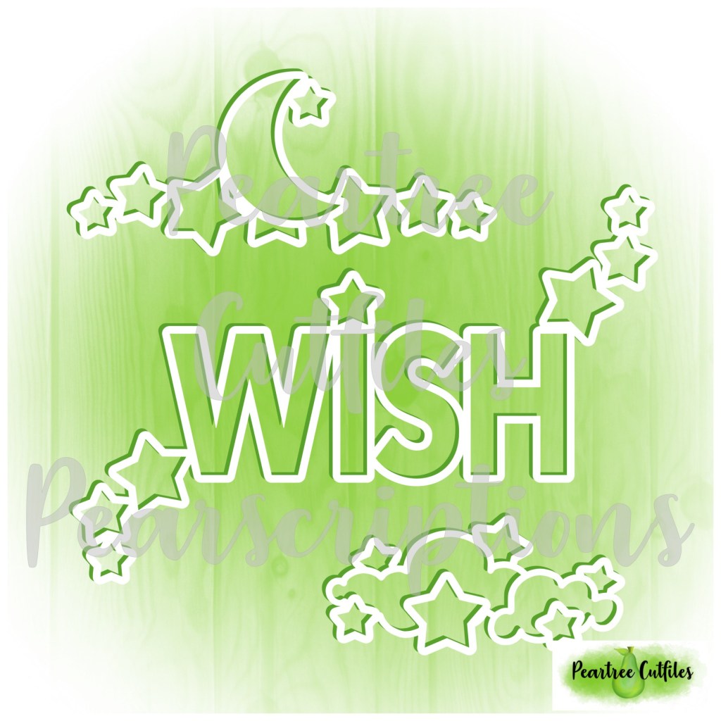 Two digital cut files from Peartree Cutfiles were featured to create this double page layout. The main title, Wish, is part of the larger Wish cut file from March’s Pearscription. I utilized the other portions of this cut file in the Big Comfy Couch layout back in March. The second cut file is entitled Stack of Presents.