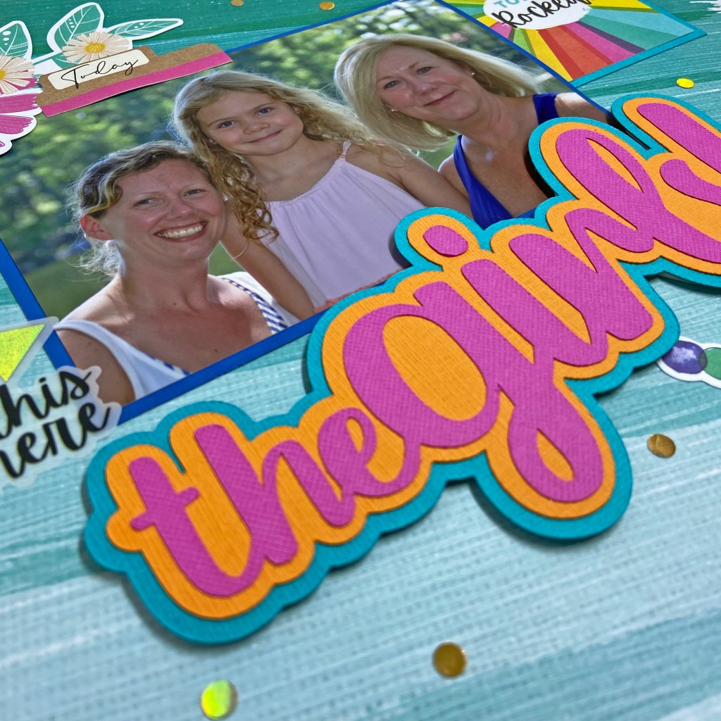 With summer just around the corner, it’s time to share a highlight from summer 2020. We’ve just come out of a very long lockdown and I can’t wait to make some fun memories this summer with my family and friends! This photo is one of my favourites from last summer as it captures 3 generations. We get so busy having fun together that we often forget to pause for a minute to take some pictures. This picture includes me, my daughter and granddaughter on a beautiful summer day at the cottage – our favourite place to be in the warm weather! I’m so thrilled that Marcy Milly SVG designed thegirls! cut file. It was exactly what I was looking for! This title lends itself to so many possibilities – sisters, reunions, weddings, sororities, girls night out, and many more – so many options!