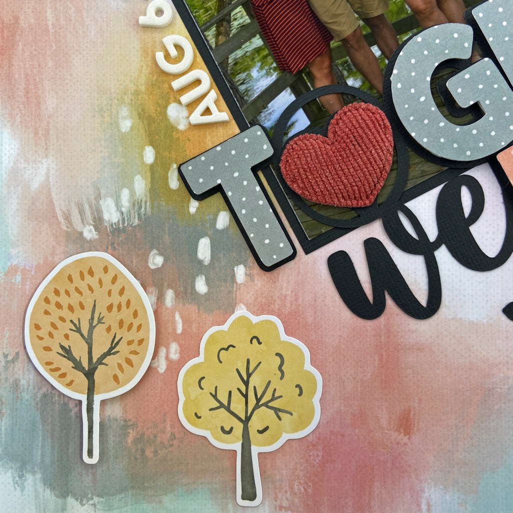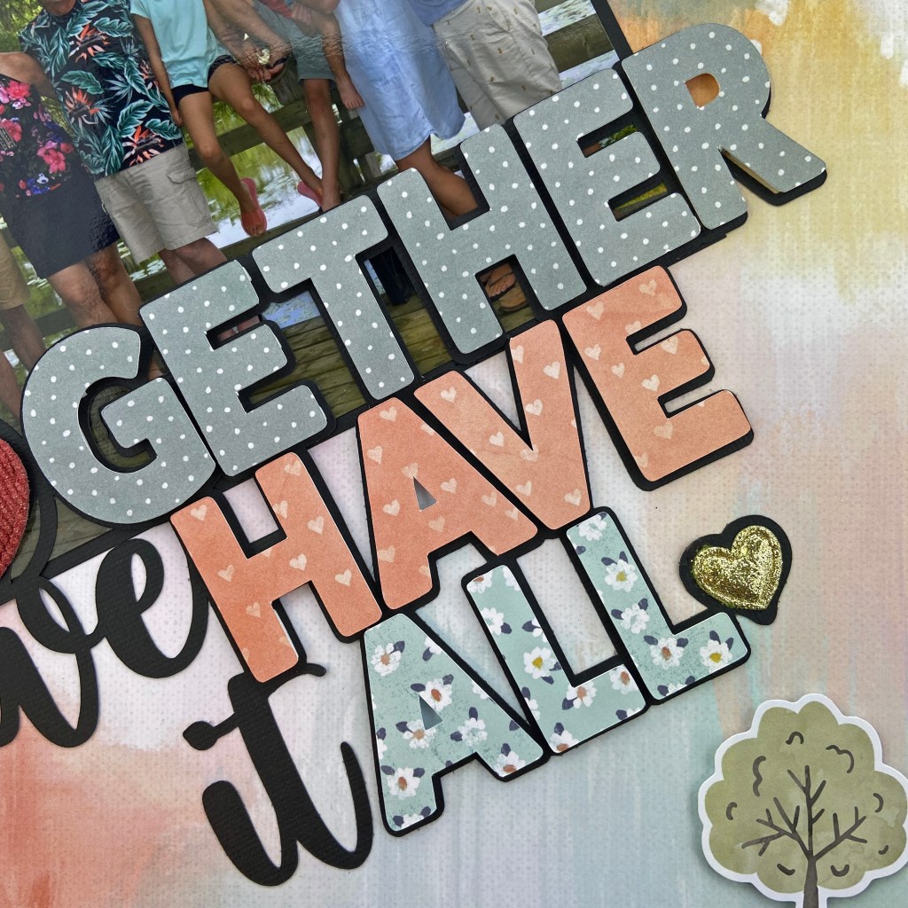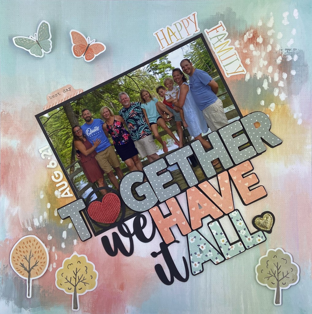 As I began designing a layout concept to document this event, I came up with the title but was unable to source it out. I turned to Marie Hurst, owner of Peartree Cutfiles, and asked for her help. Not only did she agree to design the cut file Together we Have it All, but she also exceeded all my expectations! I’m simply in love with the result! Thank you, Marie, I’m so deeply grateful!
