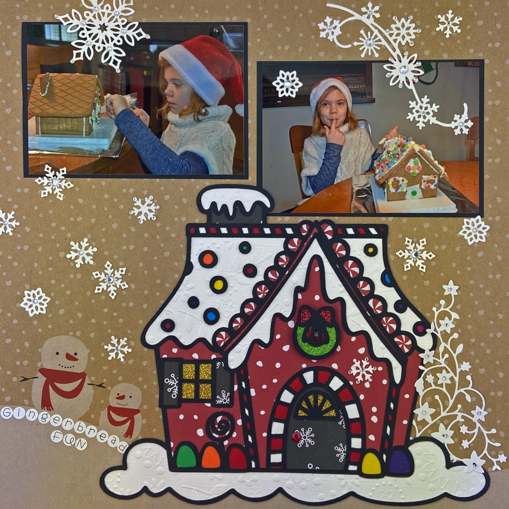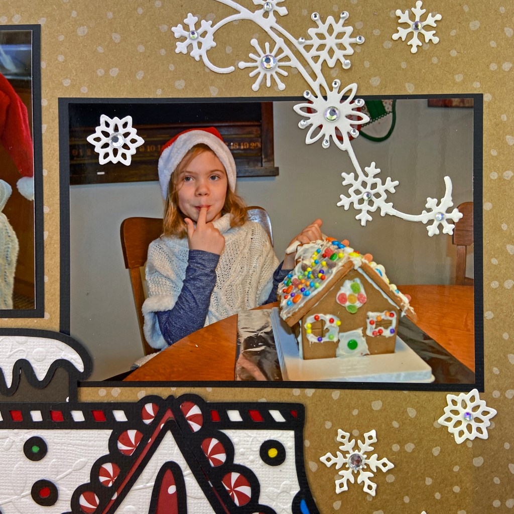HO HO HO! It’s just two more nights until the big day! Where did December go? Today I’m sharing a layout that documents Maddie building her gingerbread house last December. She had a blast putting it together, but I think she enjoyed eating the candy best of all!