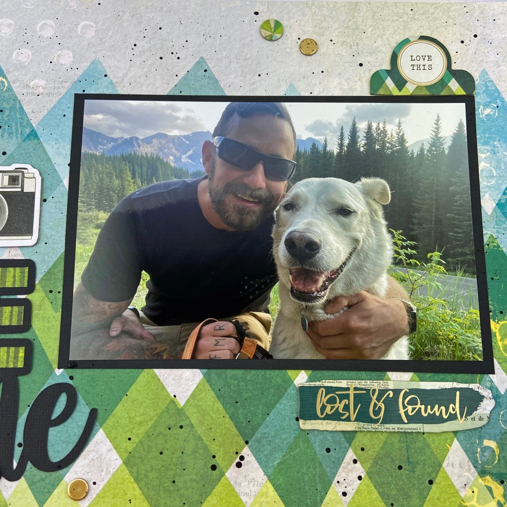 This layout was one of several I created during my time away. I chose beautiful coordinating papers from Vicki Boutin’s Fernwood collection to showcase this lovely photo. The colours were a perfect complement for the photograph, and I liked how the zigzag pattern mimics the mountain range in the photo’s background.
