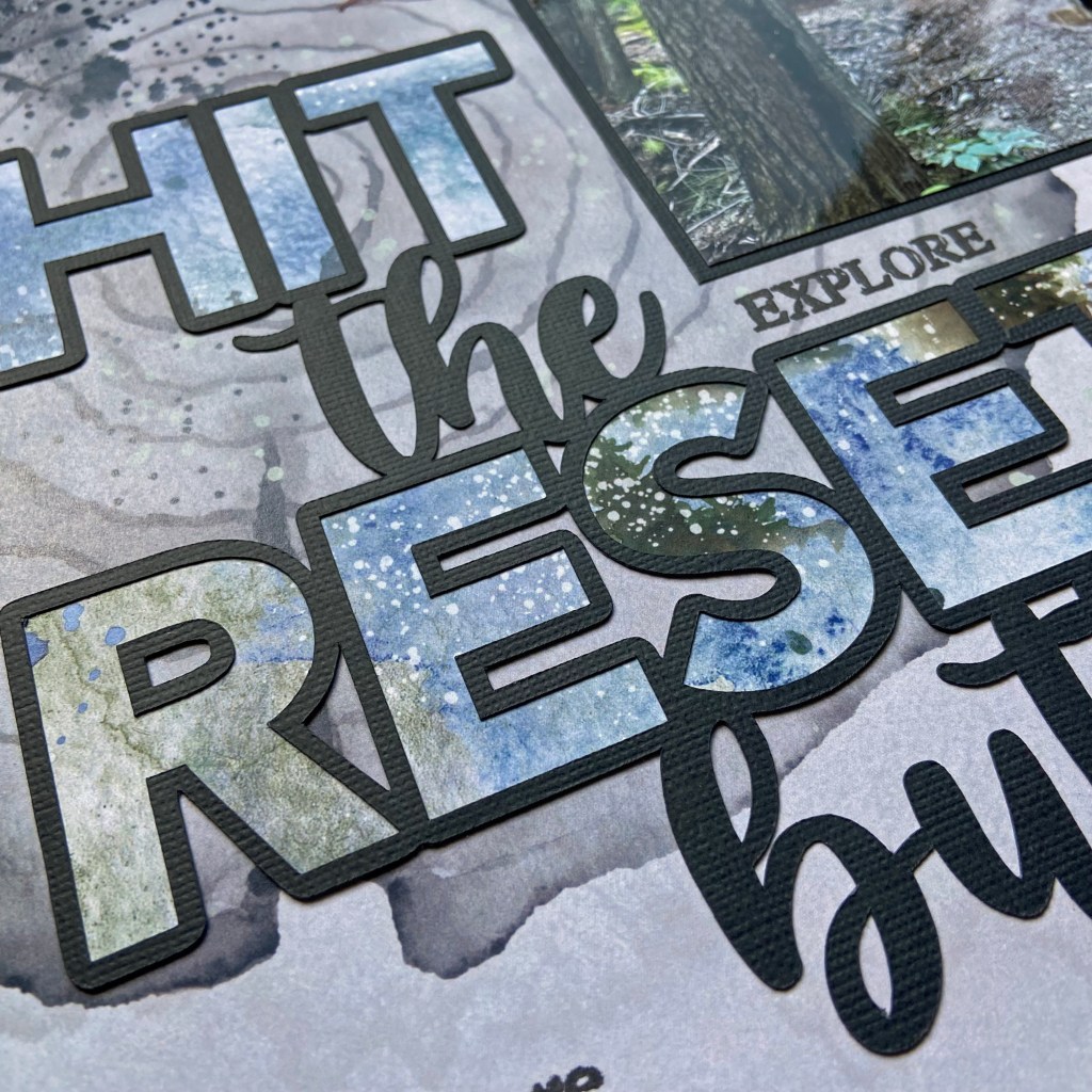 Peartree Cutfiles had the perfect cut file to complement this photo. The Hit the Reset Button was an excellent fit for the mood and feel of this layout.