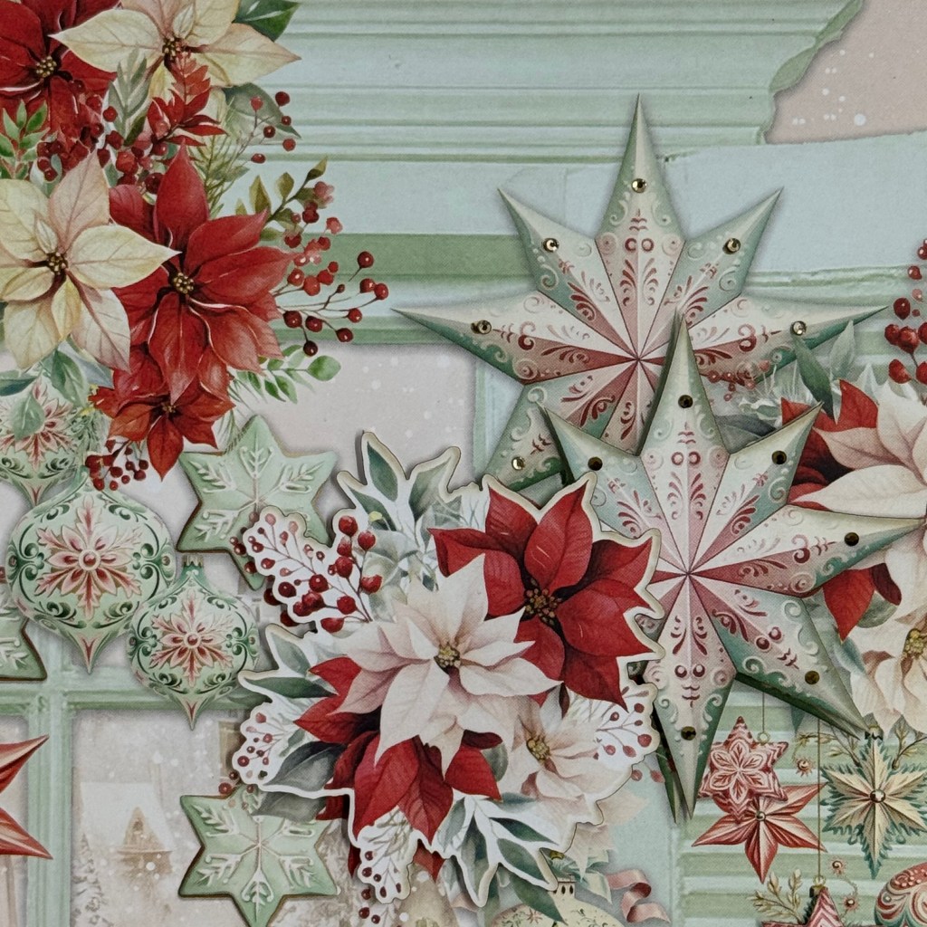 As soon as I saw the patterned paper with Santa peeking through the window, I knew it would be the perfect background paper for this layout. After adhering my picture to the design, I chose coordinating Die Cuts from the ephemera pack included in the kit. I’m a lover of dimension to my projects, so I used several 3D Foam Squares from Scrapbook Adhesives to layer the ephemera on the page. Most of the ephemera was adhered to the top of the layout, but I also layered the nutcracker and presents at the bottom of the page.