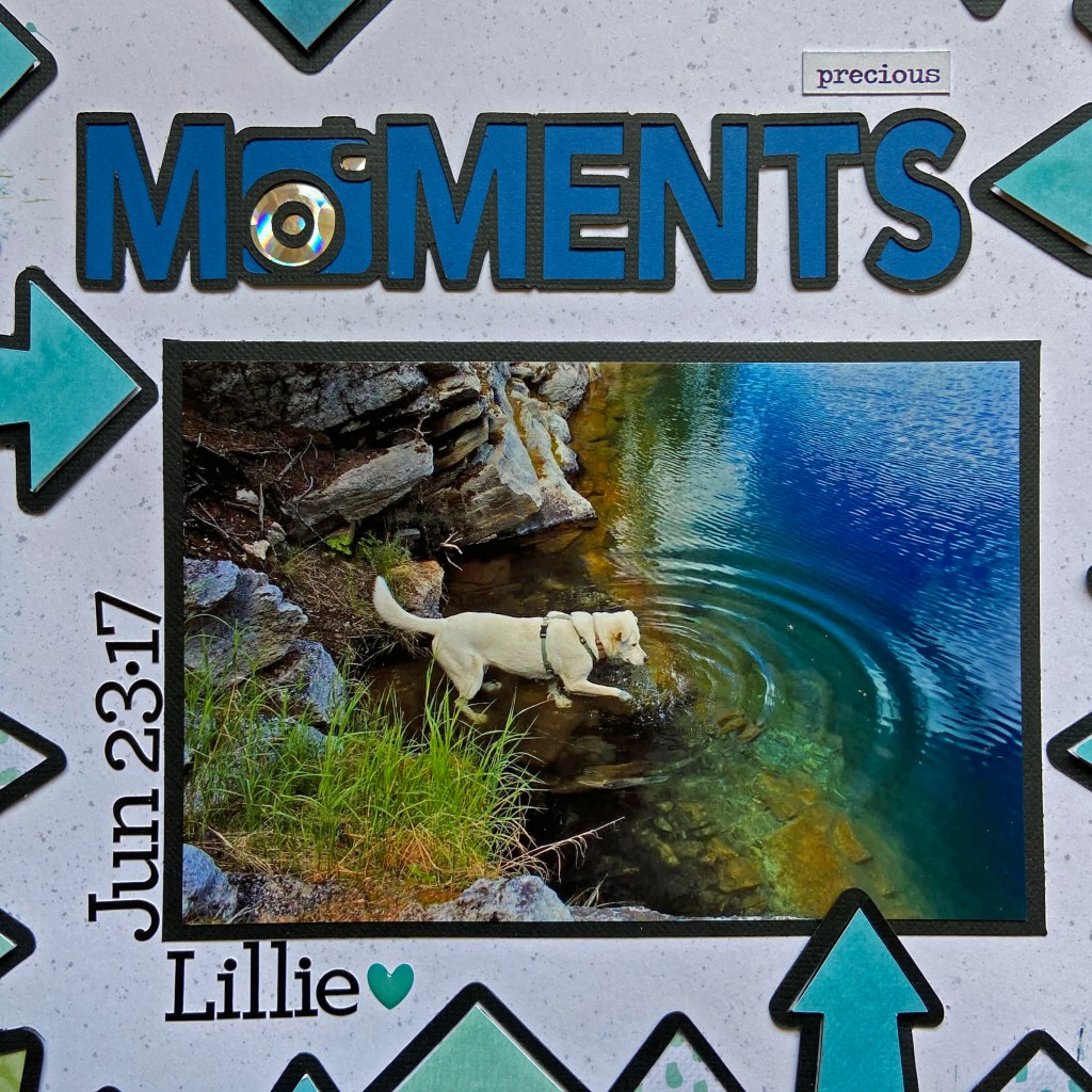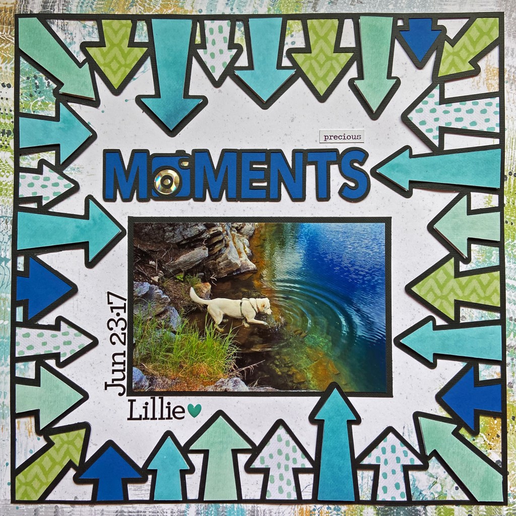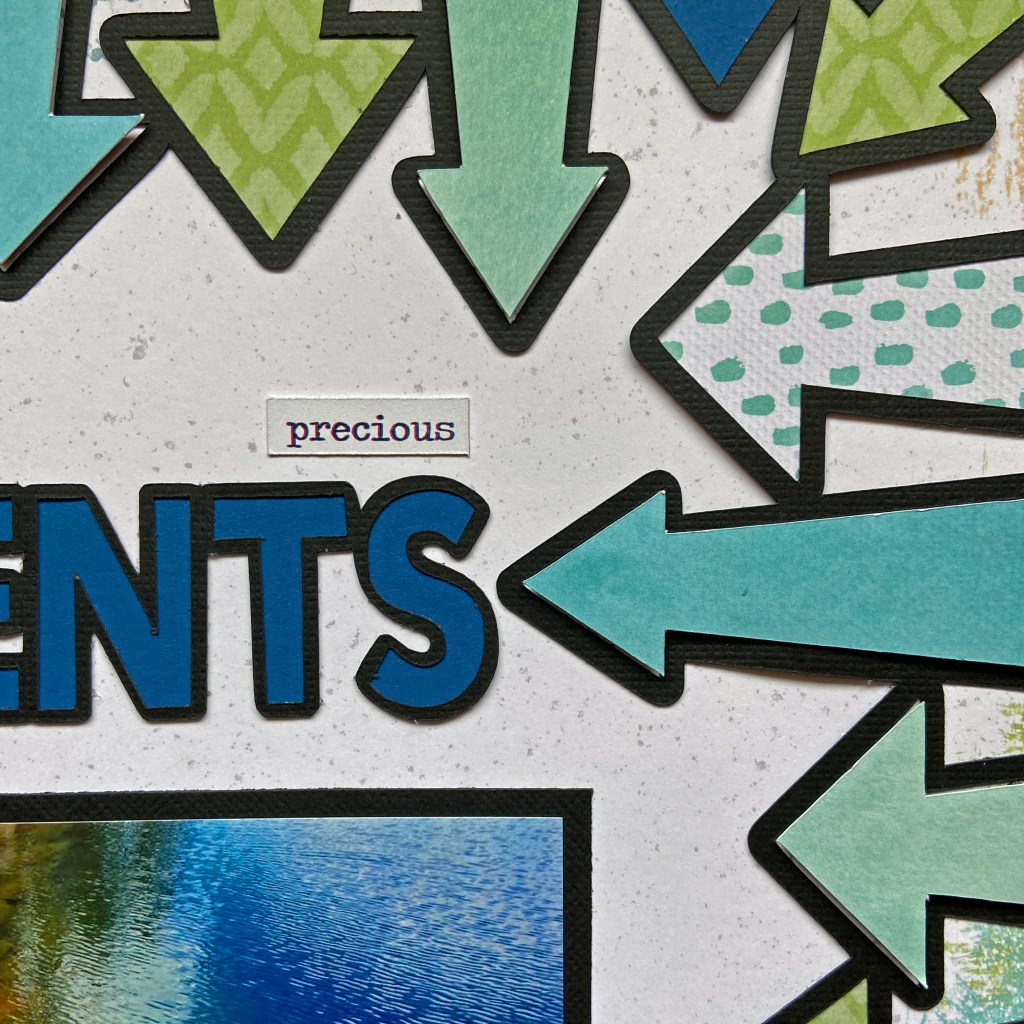 I wanted this cut file to take centre stage on the layout, so I kept the embellishments to a minimum. The Never Grow Up title, get OUTSIDE banner, snail and vellum ant all came from a coordinating ephemera package from the Never Grow Up line. I adhered some fun foam to the back of the Never Grow Up title, to provide a bit of dimension and texture to the layout. The two little layered butterflies belong to the Flower Wild Free collection by Prima Marketing Inc. The date was added using Doodlebug Design Inc‘s, my type stickers.