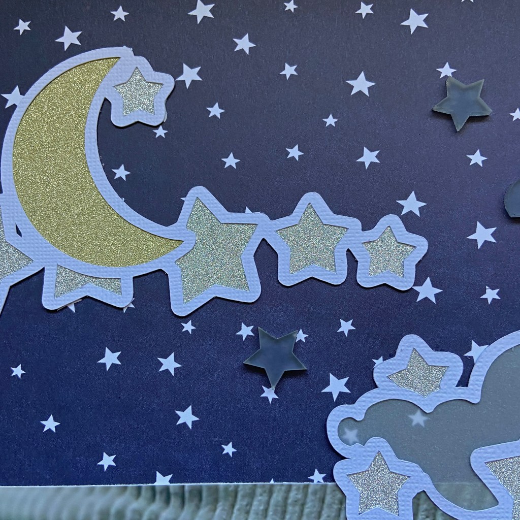 The star background paper for this layout came from Echo Park Paper Company’s Little Dreamer Boy paper collection pack. The specific paper was the back side of the Planes Palooza paper. When I saw this photo I knew right away I wanted to crop and enlarge it. I think the big photo helps draw you into the mood of the photo and layout. My March 2021 Pearscription with Peartree Cutfiles provided the perfect cut files to complement this photo and document this moment. I choose 2 of the 3 cut files that came with the Wish cut file. You can find Peartree Cutfiles here https://www.peartreecutfiles.co.uk/, but know that the file used is an exclusive file that came with the March Pearscription. I highly recommend the Pearscription, the files are just wonderful!